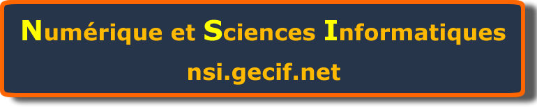 Ce site présente de nombreuses ressources utiles pour NSI et il propose des QCM pour s'entrainer ou réviser. C'est la version spécialisée NSI du site gecif.net qui propose des ressources autour des sciences de l'ingénieur des mathématiques et de l'informatique.
